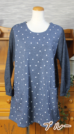 【送料無料メール便】冬用厚手生地♪裏起毛 そで付きエプロンドット柄 (かっぽう着/スモック)<ブラック・グレー・ブルー>【左右ポケット/背中タック/防寒/暖かい/保育士/介護士/かわいい/おしゃれ/シンプル/袖口ゴム/お尻が隠れる/重ね着】